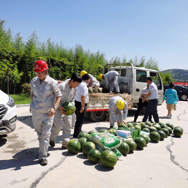 為向一線職工送關愛,送盛夏清涼,李主席一行給分公司全體員工帶來清涼又溫暖的防暑降溫用品,包括西瓜、綠豆、茶葉、毛巾等。