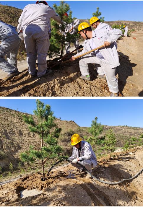 活動現場,員工們分工合作,熱情高漲。揮鍬、挖坑、培土、種樹、澆水……經過大家的辛勤勞動,一棵棵新栽樹苗迎風而立,給礦山增添一片新的綠色生機。