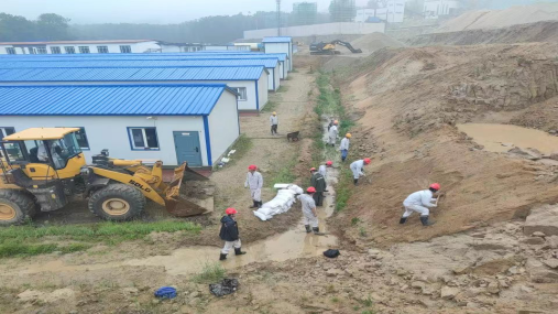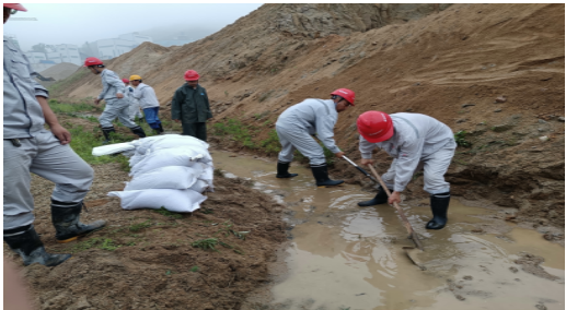 2022年6月20日早6點,接應急管理部門通知吉林地區預計未來24小時內將有強降雨,舒蘭分公司項目經理宋憲軍緊急通知各科室人員,組織對現場、生活區、炸藥庫、維修車間等地點進行了防汛設施檢查。生活區東側邊坡被臨近公司時候后未進行修整,加之連續降雨一整夜,東側邊坡垮塌,淹沒排水溝,造成堵塞。 接到通知后,生產科,立即調用裝載機趕到現場,組織員工帶好防汛裝備趕到現場。現場負責人周浩講“裝載機立即清理邊坡上的塌陷料,生產科組織人員去上游疏通水道,安全科和設備科組織人員去邊坡上面挖掘水溝設置擋墻,避免水流二次破壞邊坡”,任務分配完畢后,各科室帶領人員緊鑼密鼓的組織起來。