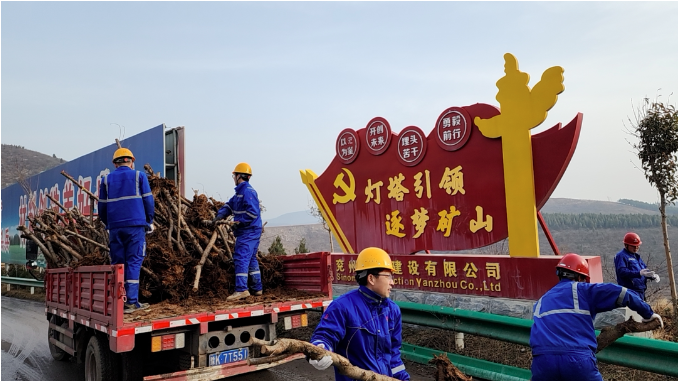 活動中,大家一起鏟土造坑、培土圍堰、扶正樹苗、填土踩實、澆水灌溉,現場一派繁忙景象,氣氛熱烈,在大家的團結協作下,200余棵樹苗便在道路兩旁安了“家”,建立起象征著攜手共建綠色礦山的“同心樹林”,一棵棵新植樹苗迎風而立,守護著礦山水土。