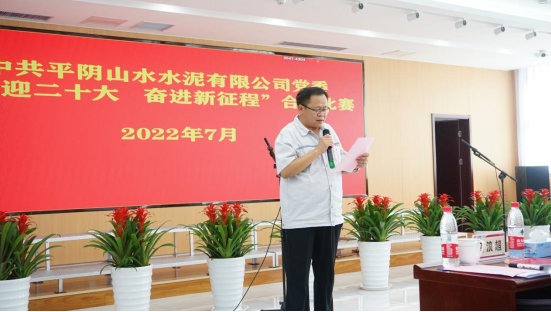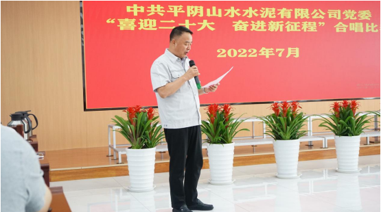 今年是偉大的中國共產(chǎn)黨建黨101周年華誕,為慶祝黨的百年華誕中共平陰山水水泥有限公司黨委組織開展“喜迎二十大 奮斗新征程”合唱比賽。 7月8日下午15:30分,隨著歡快的《迎賓進(jìn)行曲》的響起,參加合唱比賽的12位評委和5支代表隊依次進(jìn)場。 本次比賽共分為:行政銷售支部代表隊、塑編支部代表隊、生產(chǎn)一支部代表隊、生產(chǎn)二支部代表隊和兗州中材平陰分公司與礦管辦代表隊。 15:50分活動正式開始,平陰山水黨委書記侯福存發(fā)表主旨講話:今年是建黨101周年。100多年來,我黨團(tuán)結(jié)帶領(lǐng)全國各族人民自強(qiáng)不息、拼搏進(jìn)取,戰(zhàn)勝艱難險阻,取得了舉世矚目的輝煌成就,帶領(lǐng)我們昂首闊步邁向偉大復(fù)興。今天,我們隆重集會,用歌聲頌揚黨的光輝歷史,緬懷黨的豐功偉績,向黨的101歲華誕獻(xiàn)禮,向黨的二十大獻(xiàn)禮。公司黨委舉辦本次合唱大賽,既是豐富黨建工作形式、促進(jìn)黨建和公司中心工作高度融合的重要舉措,也希望通過比賽,進(jìn)一步增強(qiáng)黨群、干群凝聚力和向心力,激勵全體干部職工堅定信念、迎難而上,在“百日趕超”勞動競賽中繼續(xù)立足崗位、攻堅克難,全力沖刺“大趕超”任務(wù)目標(biāo),為公司項目建設(shè)和高質(zhì)量發(fā)展貢獻(xiàn)更大力量。 最后,侯書記宣布合唱比賽開始。