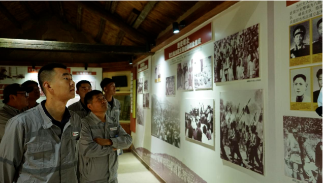 在八路軍115師抱犢崮抗日紀念園,全體員工依次參觀了八路軍第115師紀念館、115師政治部、王麓水紀念館等紅色展館,認真研學抗日戰爭時期八路軍英勇抗日的光輝事跡。一件件破舊而又珍貴的實物,一幅幅發黃而又寶貴的照片,一場場硝煙彌漫的激戰場景,仿佛將大家帶回到了那個激情燃燒、熱血沸騰的戰爭年代,使大家深刻地感受到八路軍不屈不撓的頑強意志和血戰到底的英雄氣概,思想靈魂受到了深刻的革命洗禮。員工們不時駐足觀看,了解抱犢崮山區八路軍隊伍與山區人民軍民魚水情深的感人故事,重溫戰火紛飛的崢嶸歲月,展廳內陳列的老照片以及戰場上使用的槍支彈藥無不提醒著我們要牢記革命歷史。